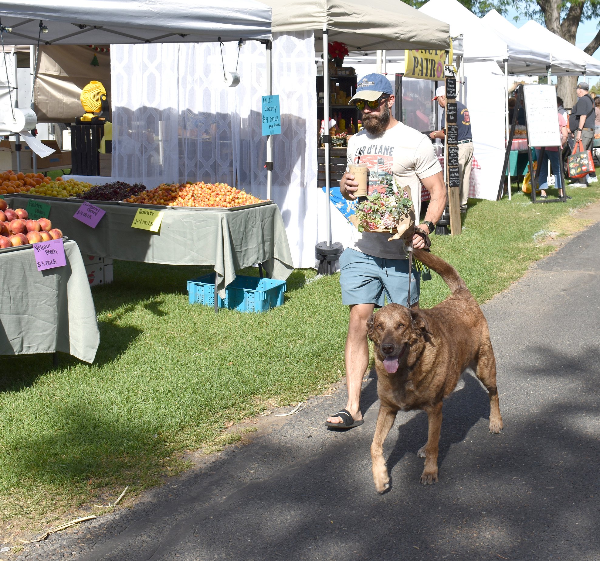 Not all of the 68 vendors at the farmers market sported yuletide decorations, but enough did to counteract the high-80s temperatures and bright sunshine a little bit. The market management celebrated with a scavenger hunt and basket giveaway. Soap Lake musician Rylei Franks sang, and a good-sized crowd roamed the booths looking for fresh produce, good food and handicrafts.
