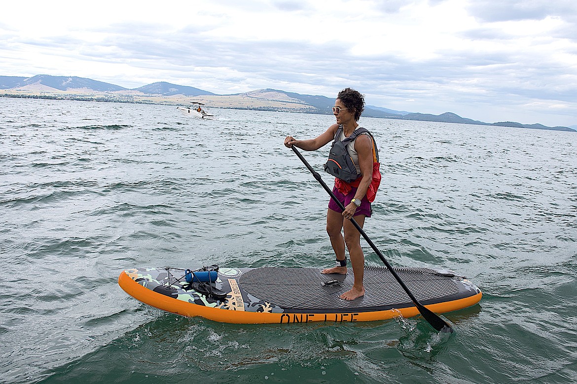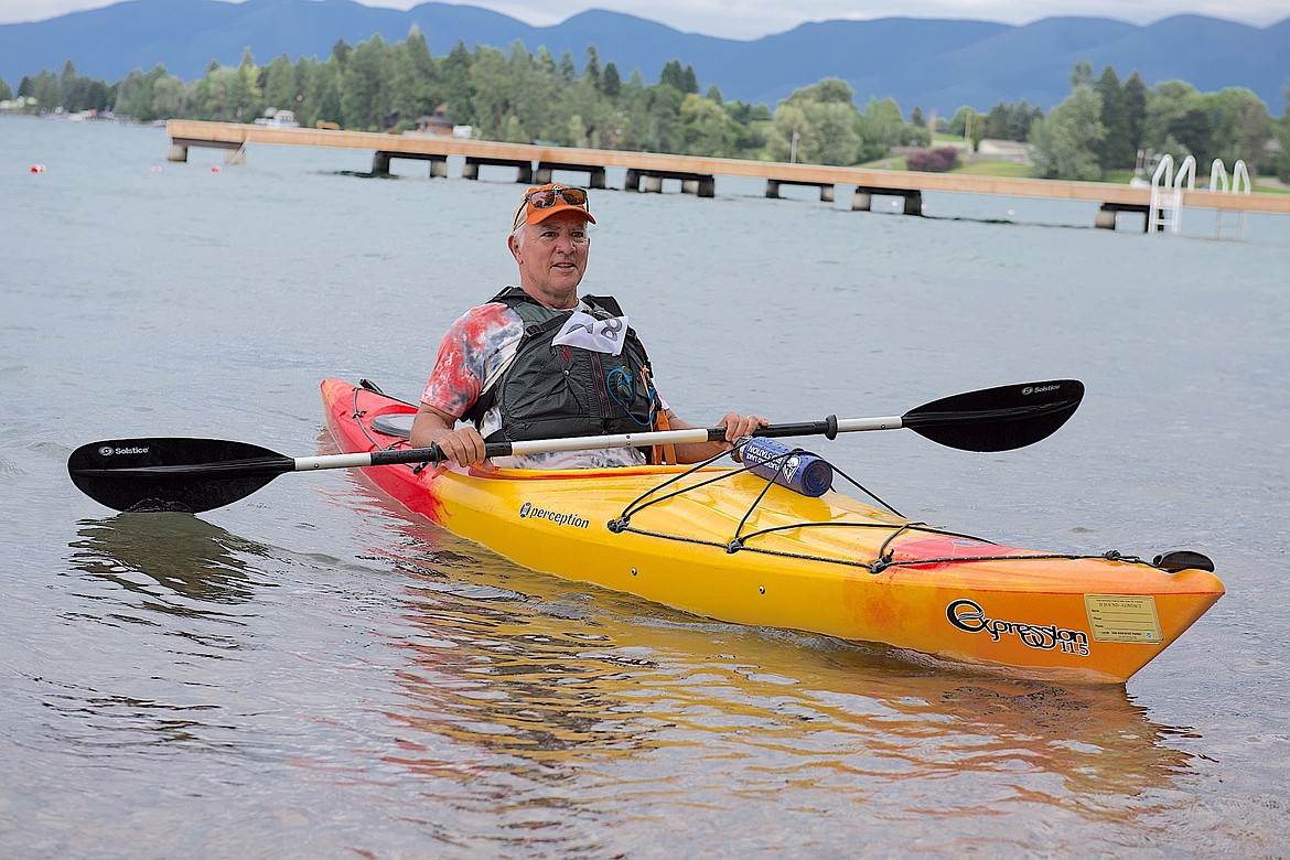 Jim Elser, director of UM's Flathead Lake Biological Station, pulled into the beach aboard a kayak. He noted that the Flathead Lakers work closely with the bio station to monitor and protect the pristine water he had just paddled across.