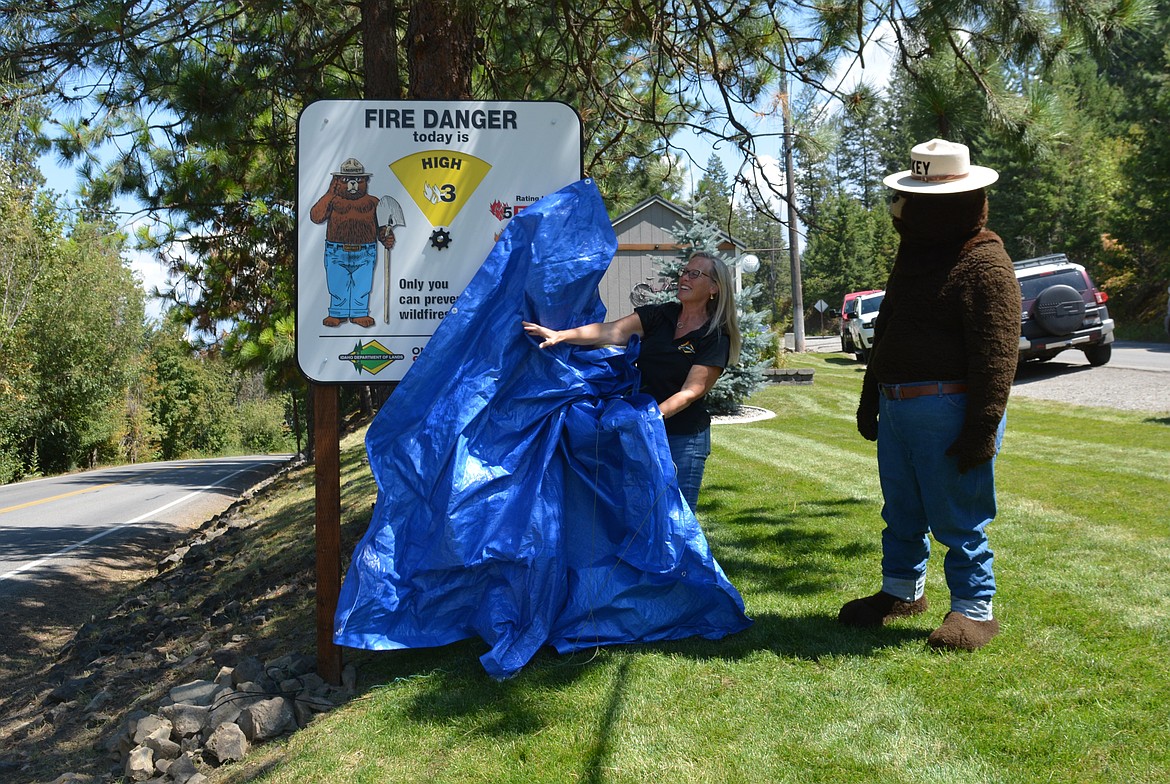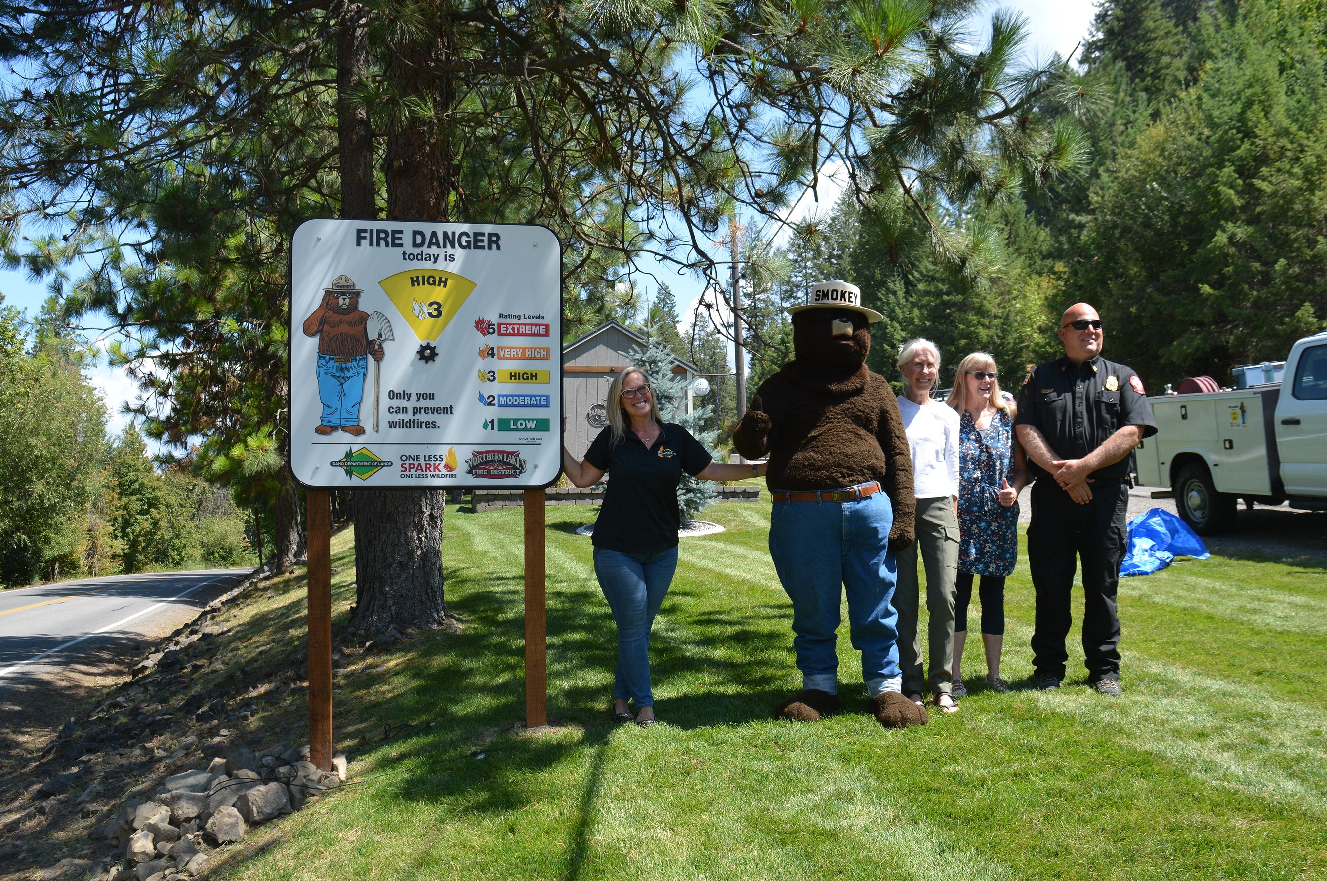 As part of their interest in public safety, a new fire danger level sign was unveiled Wednesday at the intersection of Upper and Lower Hayden Lake roads.