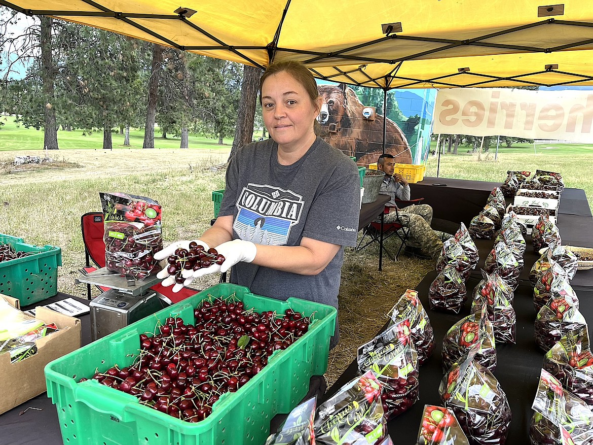 Jamie Ortiz and her husband, Luis, travel to Polson from their home in Yakima, Wash., every summer. Luis brings a six-man crew of pickers while Jamie, who injured her back five years ago, sells local cherries from a stand along Hwy. 93.