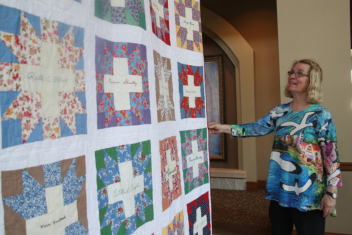 "It was kind of like being in the right place at the right time," she said. "I just liked going into the alternative high school's thrift store because there were some interesting things in there, and then to find that bag and to have that opportunity to be a part of our church's quilting group so I could bring it here and find out how to finish it or not."