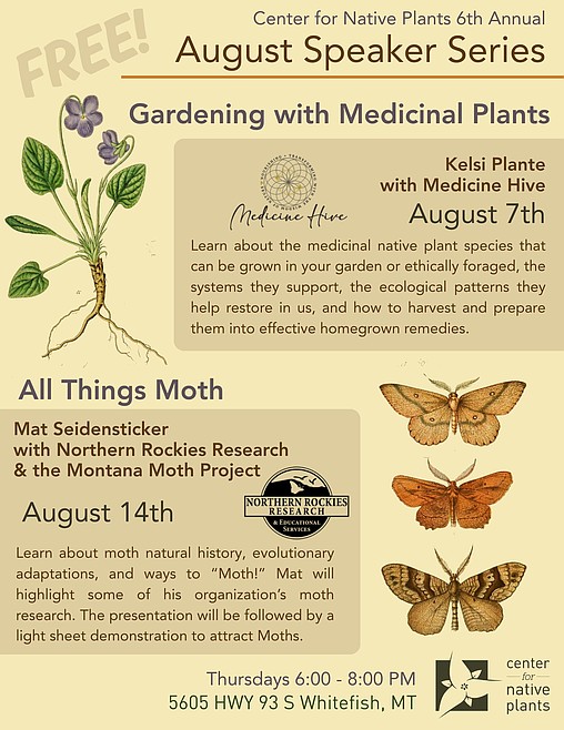 The Center for Native Plants on U.S. 93 South will present its annual speaker series each Thursday evening in August. The first two presentations are free, and the second two are ticketed events that each cost $25.