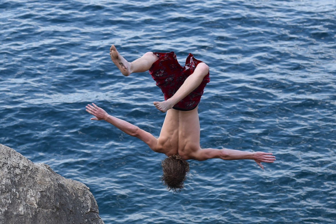 COEUR d’ALENE — Wednesday’s high of 97 degrees was no problem for brothers Cayd and Zane Winters, who spent the afternoon jumping from the rocky Tubbs Hill shoreline into the crisp waters of Lake Coeur d’Alene.