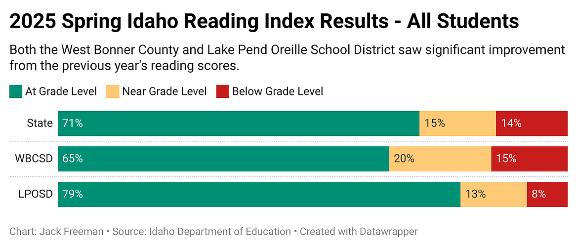 SANDPOINT — The Lake Pend Oreille and West Bonner County school districts both saw significant improvement in their Idaho Reading Indicator scores over the past year.