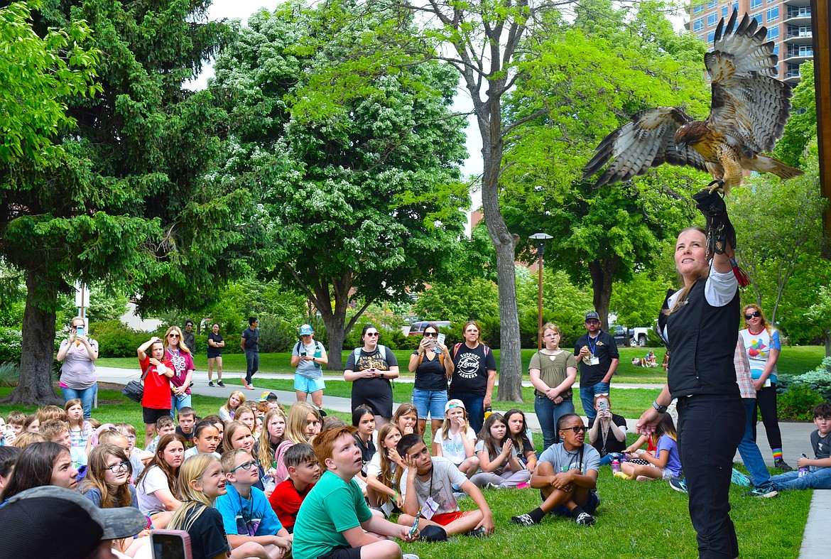The fifth graders were also treated to a birds of prey demonstration featuring a red-tailed hawk, a peregrine falcon and a barn owl — all of which received plenty of oohs, ahhs and questions from the young audience.
