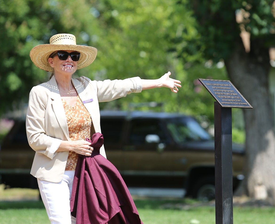 Coeur d’Alene City Councilor Kiki Miller beamed when she drew back the cloth covering a plaque in Phippeny Park that commemorates the district’s designation. She is the city council’s liaison to the Historic Preservation Commission and was “instrumental” in its formation in 2019, Burns said.