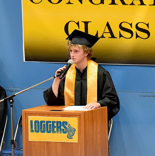 Senior Class President Bergen Fortner led the Pledge of Allegiance and introduced the speakers, which included Salutatorian Ryan Beagle, Co-Valedictorians Rowen Sherbo and Kylee Derryberry.
