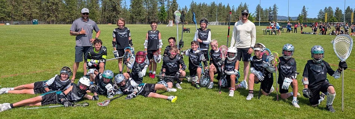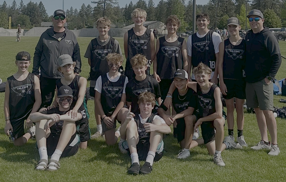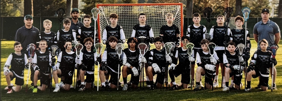 Courtesy photo The North Idaho Youth Lacrosse 7/8 Grade Falcons Black team wrapped up its season last weekend by taking fourth place at the Spokane LaxFest at the Dwight Merkel Sports Complex in Spokane. In the front from left are Hayden Carpenter and Blake Legler; second row from left, Berkley Todd, Linkoln Todd, Barrett Halgren, Hawke Warren, Hayden Christensen and Landon Kroepfl; and back row from left, coach Karl Todd, Kowen Lawhead, Wesley Morlock, Gabe Thexton, Tristan Lunsford, Ian Osterdock and Matt Osterdock. Not pictured is Eli Peak.
