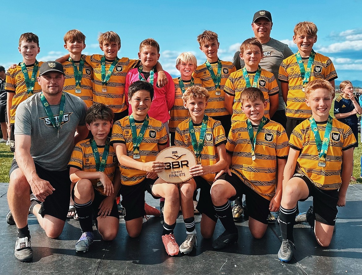 Courtesy photo The Sting SC 2013 Premier boys soccer team took second place at the 3 Blind Refs tournament in Kalispell, Mont., this past weekend. From left are assistant coach Joshua Pratt, Liam Arnie, Oliver Clark, Bridger Gatten, Easton Molitor, Finn Hebener, Hunter McComb, Brody Pratt, Shane Staeheli, Liam Jell, Kaleb Smith, Beau Broker, Lucas Gonzales and head coach Leo Barone.