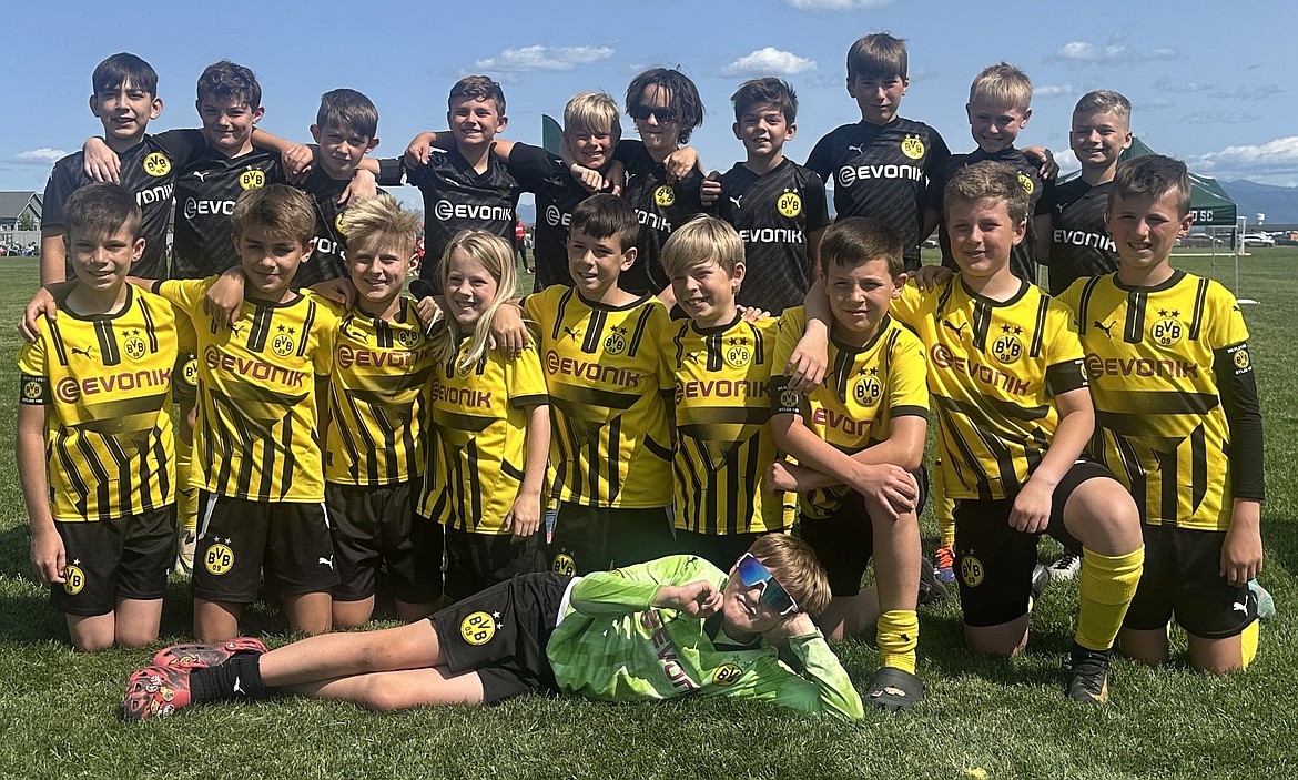 Courtesy photo The BVB IA CDA U11 Black and Yellow boys soccer teams competed at the 3 Blind Refs tournament in Kalispell, Mont., last weekend. In the front is Ezra Herzog; front row from left, Kash Tucker, Luka Riley, Maverick Paine, Stein Berk, Jack Harrison, Carter Dance, Carter Marine, Thatcher Lechleitner and Davis Hartley; and back row from left, Andres Lujan, Luke Johnson, Sam Mojzis, Ben Erickson, Jett Crandall, Graysen Higgins, Griffin Curry, Jasper Kolb, Gunnar Stover and Landon Skiles. Not pictured are Collin Pinchuk and Isaac Estep.