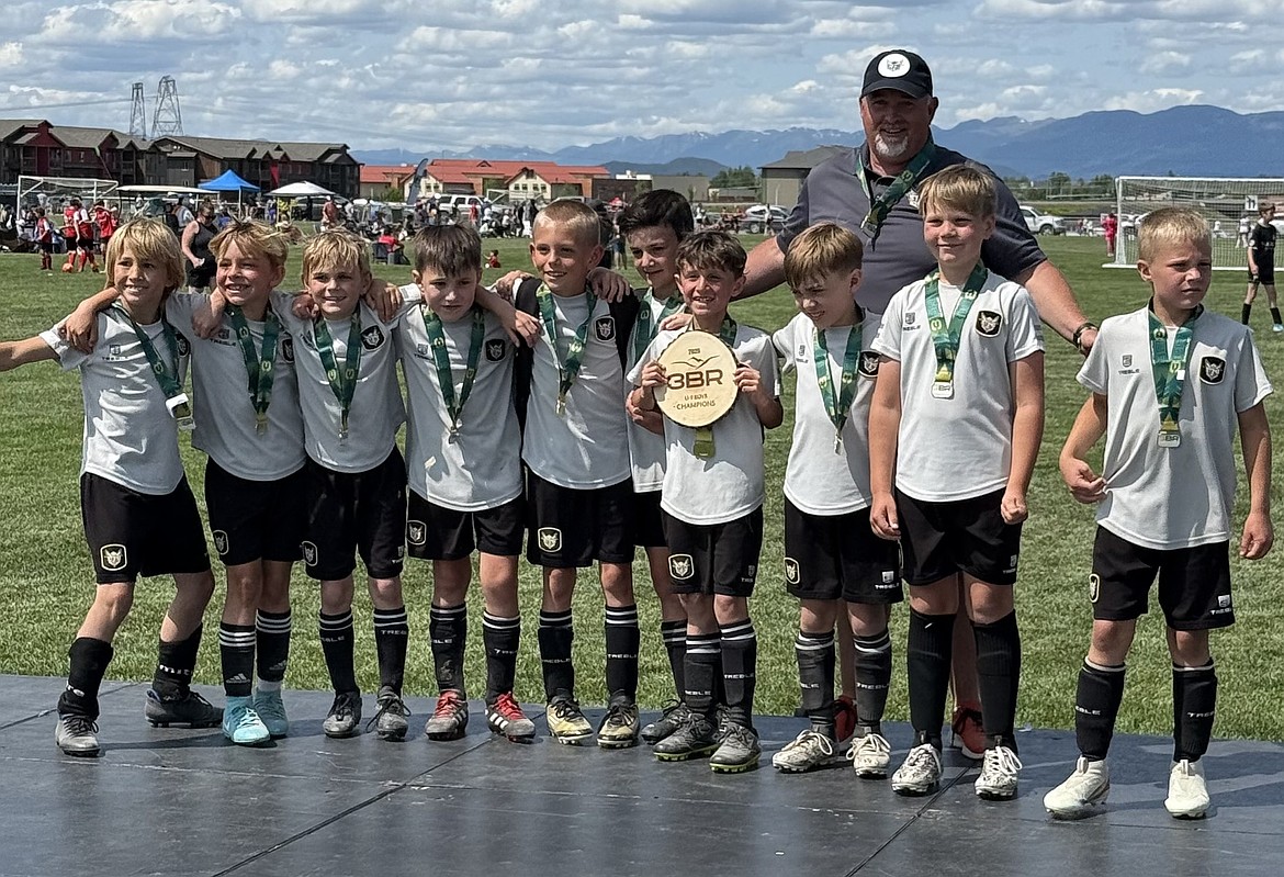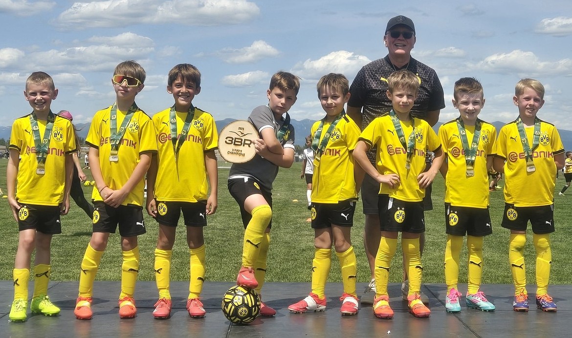 Courtesy photo The BVB IA CDA U9 Black boys soccer team won the Gold Division of their age bracket last weekend at the 3 Blind Refs tournament in Kalispell, Mont. The team went undefeated through three games and clinched the championship with a 9-4 win over Sting U9 Black in the final. From left are Weston Kramer, Waylon Wood, Onyx Barnes, Hugh Erickson, Mitchell Volland, Greyson Guy, Colin Happeny and Max Stover; and rear, coach John O'Neil. Not pictured is Peyton Schock.