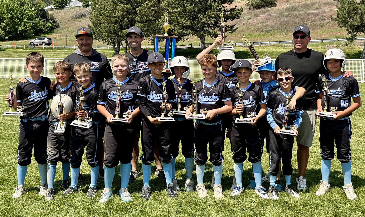 Courtesy photo The North Idaho Sharks 12U baseball team won the Best in the Northwest tournament in Spokane for the third year in a row. The Sharks finished the regular season with a 27-6 record, reaching the championship game in each tournament they played in. In the front row from left are Colin Schrieber, Kellen Larson, Ashton Elwell, Cason Bishop, Koa Fenter, Nolan Haley, Jacob Briner and Brodie Williams; and back row from left, Beck Odenthal, Easton Henderson and Wyatt Mathews.