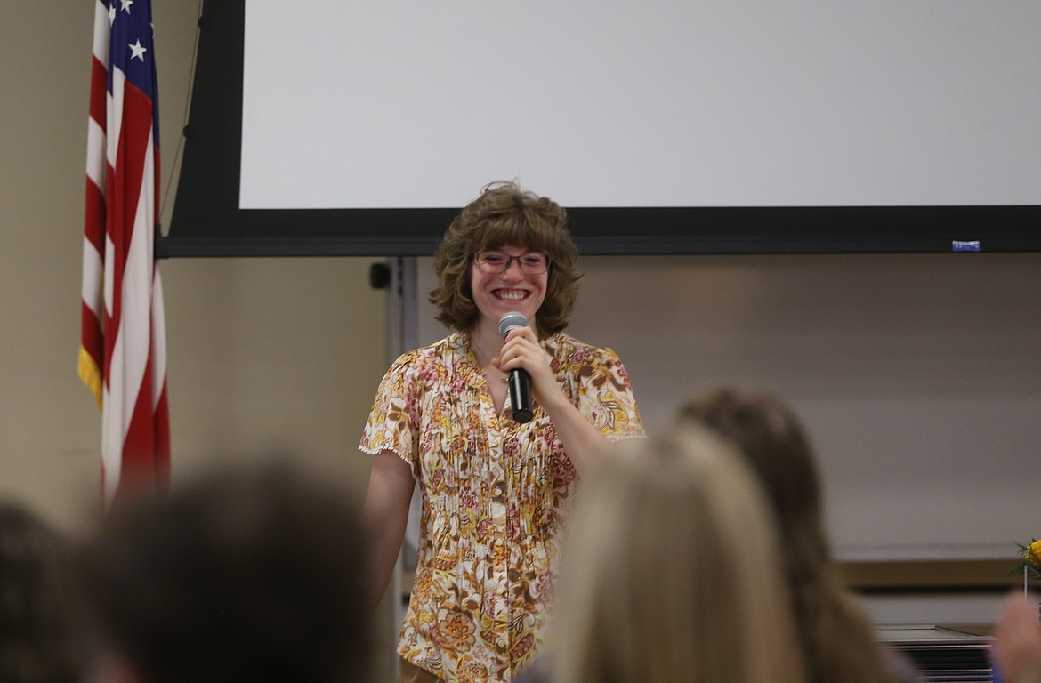 Project SEARCH Class of 2025 graduates listen to opening remarks Tuesday as they wait to deliver their capstone presentations during a well-attended ceremony at Kootenai Health. From left: Durant Teague, Emily Szmania, Janie Curl, Jeanie Curl, Madalynn Reed, Spencer Vogt, Victoria Benson and Wyatt Emond.ARTICLES BY DEVIN WEEKS