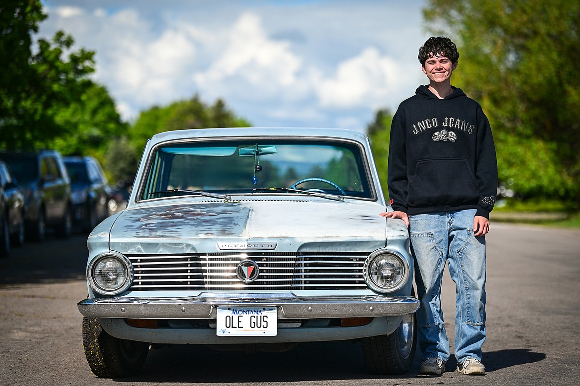 For an interview with the Daily Inter Lake in May, Fleming was asked to drive the car to school to be featured in his portrait. As he pulled up in the blue car, the color faded and scuffed from sanding, two skulls dangling from the rearview mirror swayed slightly as he put it into park. The license plate reads “Ole Gus.”