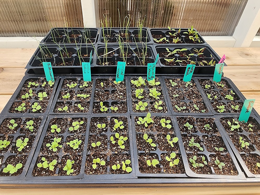 Shade is also essential for cool-season seedlings. Consider interplanting among summer crops such as beans, corn and tomatoes, or on the shaded side of a trellis. You can further protect seedlings with a shade cloth, or a patio umbrella can also work.