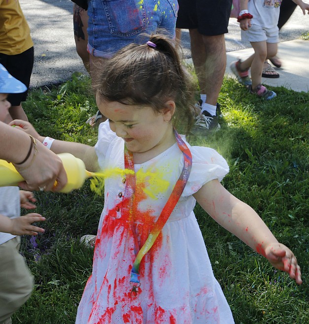 The color fun run, which started at 10 a.m., was an opportunity for kids and parents alike to learn more about the summer activities put on by the library, in addition to getting sprinkled with chalk paint. To partake in the run, event officials requested a non-perishable food donation item per participant to give to the local food bank.
