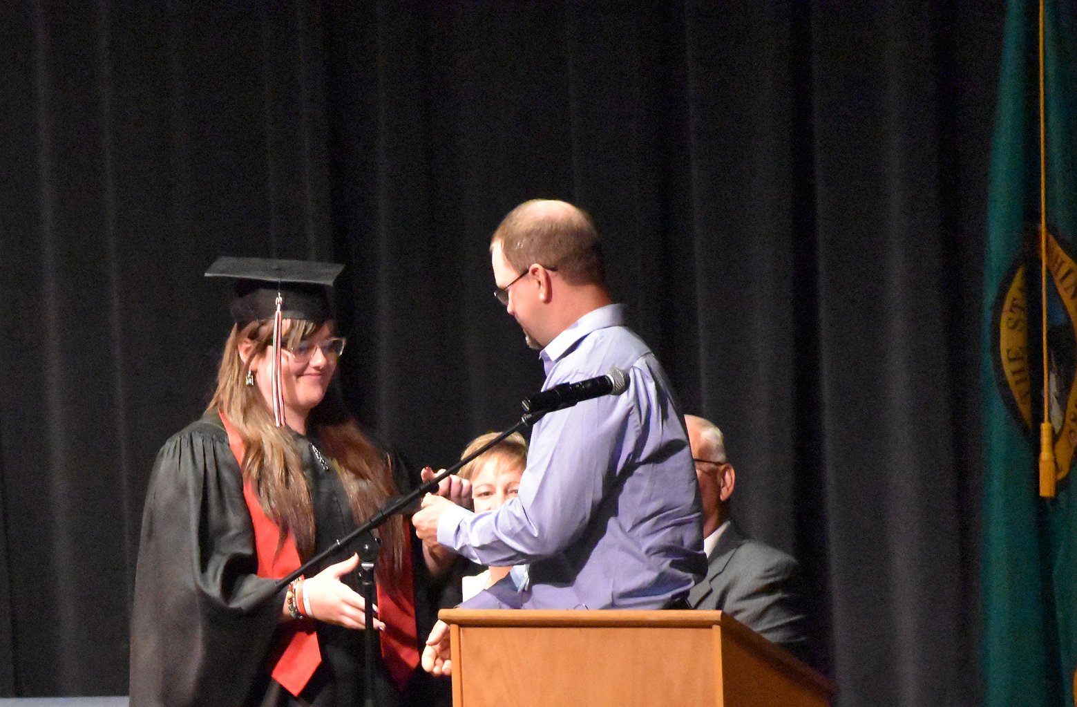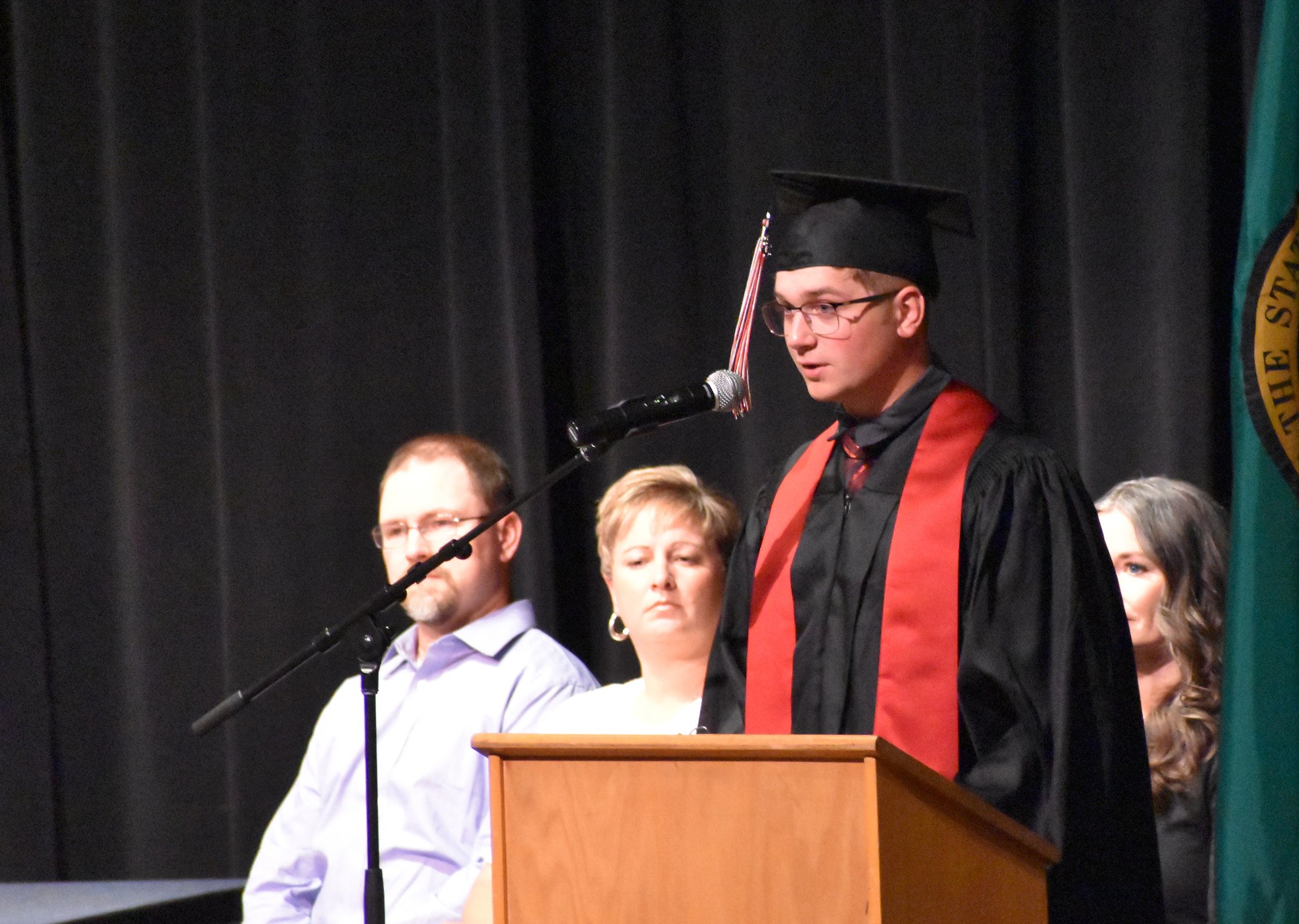 Carter Pitts stands while being recognized for receiving grants and scholarships to attend Washington State University. Pitts said his favorite memory from his high school career was winning the state championship with the football team in his freshman year which he wore the championship ring for the graduation ceremony.ARTICLES BY CALEB PEREZ