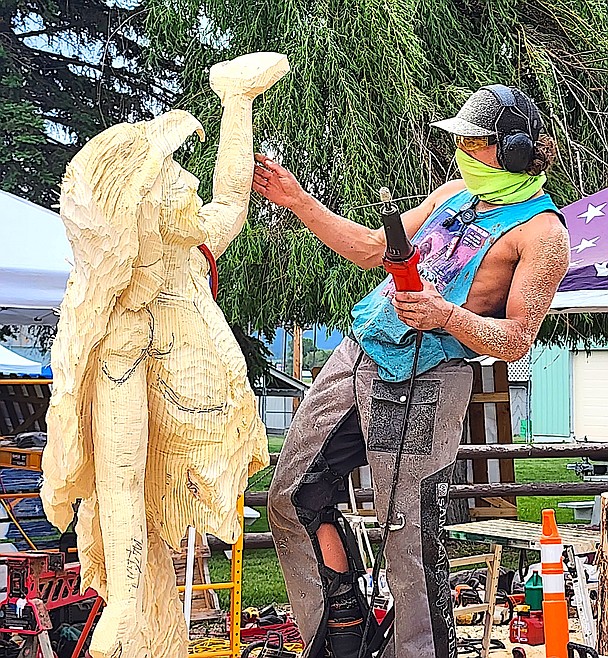 Chainsaws were growling, grumbling and whirring amid a nest of extension cords, drifts of sawdust, and many bottles of water. Must have been the annual Mission Valley Chainsaw Carvers Rendezvous in Ronan. It began with move-in day on Thursday, and carving Friday, Saturday and Sunday.