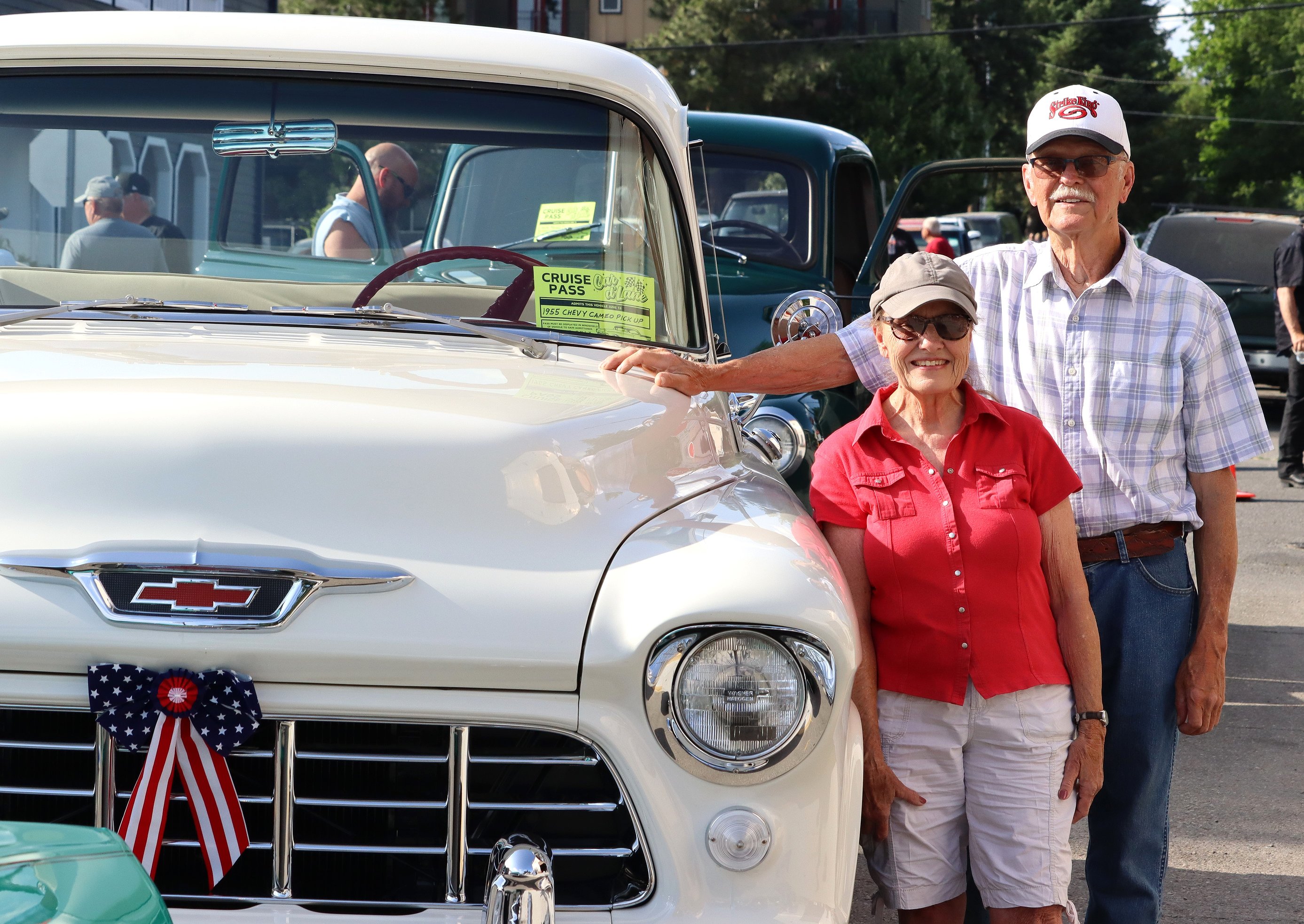 Del and Rosann Lawrence of Coeur d’Alene were in their 1955 Chevrolet Cameo pickup with a “three on the tree,” which they’ve owned for 37 years. It only comes out for special occasions like Car d’Lane, and has only been driven about 600 miles in the past six years.