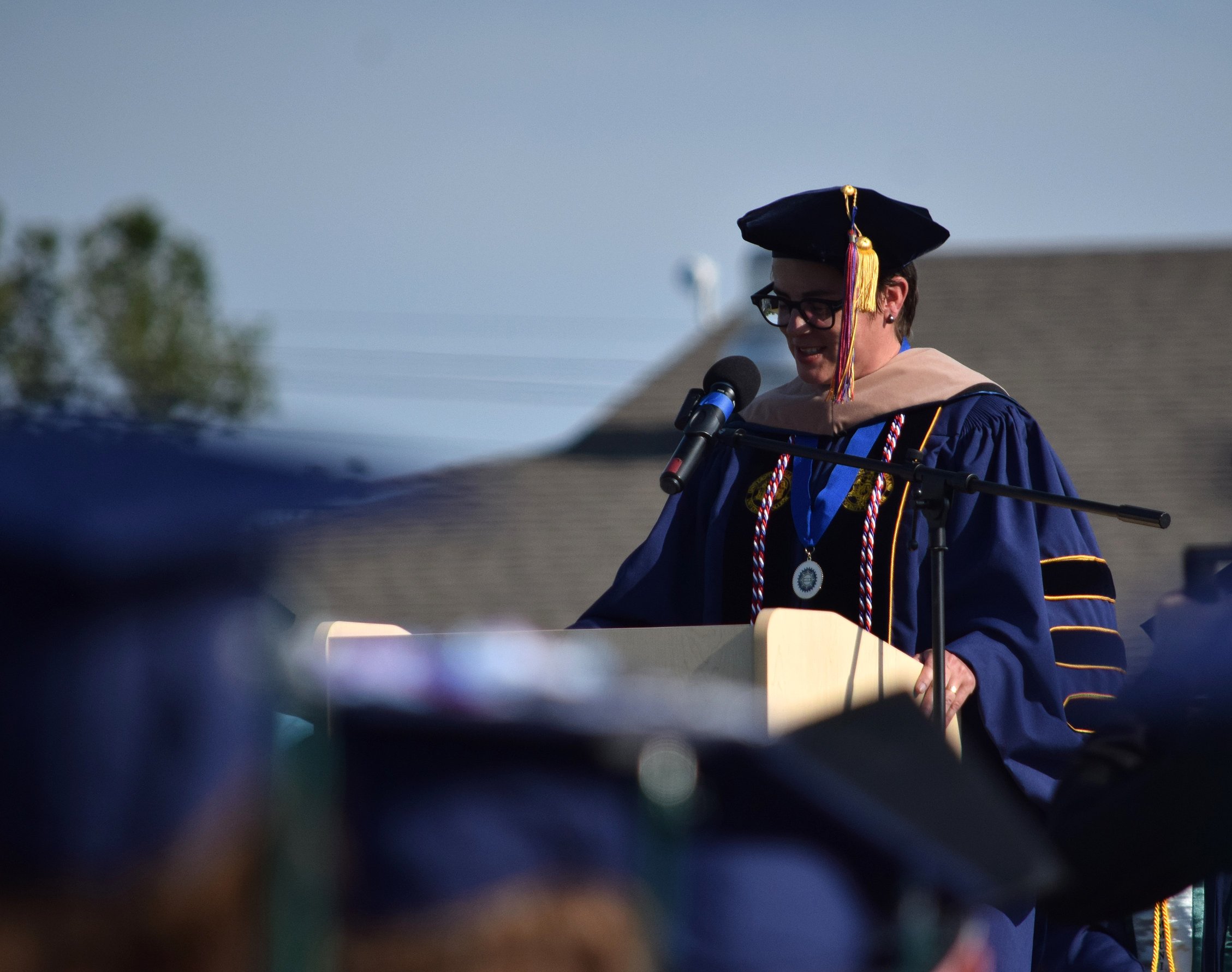 “We are here tonight to recognize and celebrate our graduates, as well as to honor the friends and family, faculty and staff who helped our graduates arrive on this day,” she said.
