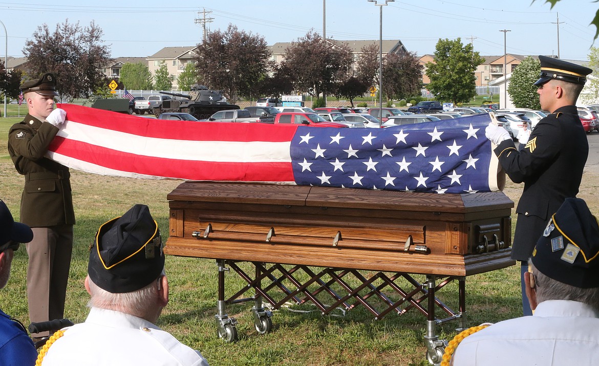 A small crowd gathered Monday evening on the lawn of the Post Falls American Legion to witness the solemn ceremony conducted by the Post 143 Honor Guard at the request of military families who wish to lay their loved ones to rest with dignity and respect.