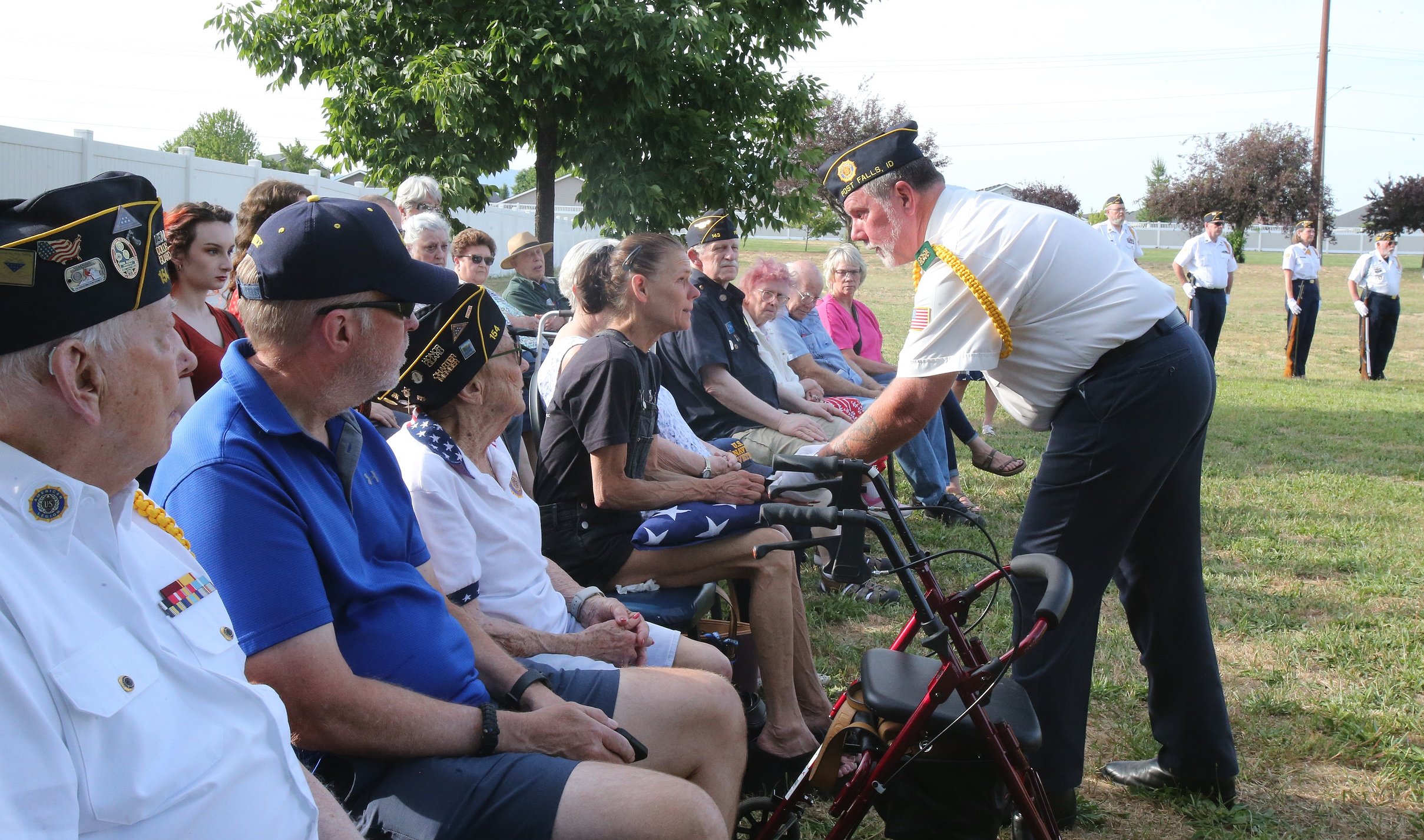 A few of Post 143 Honor Guard's inactive members wore their decorated hats and uniforms as they watched the ceremony from their seats.