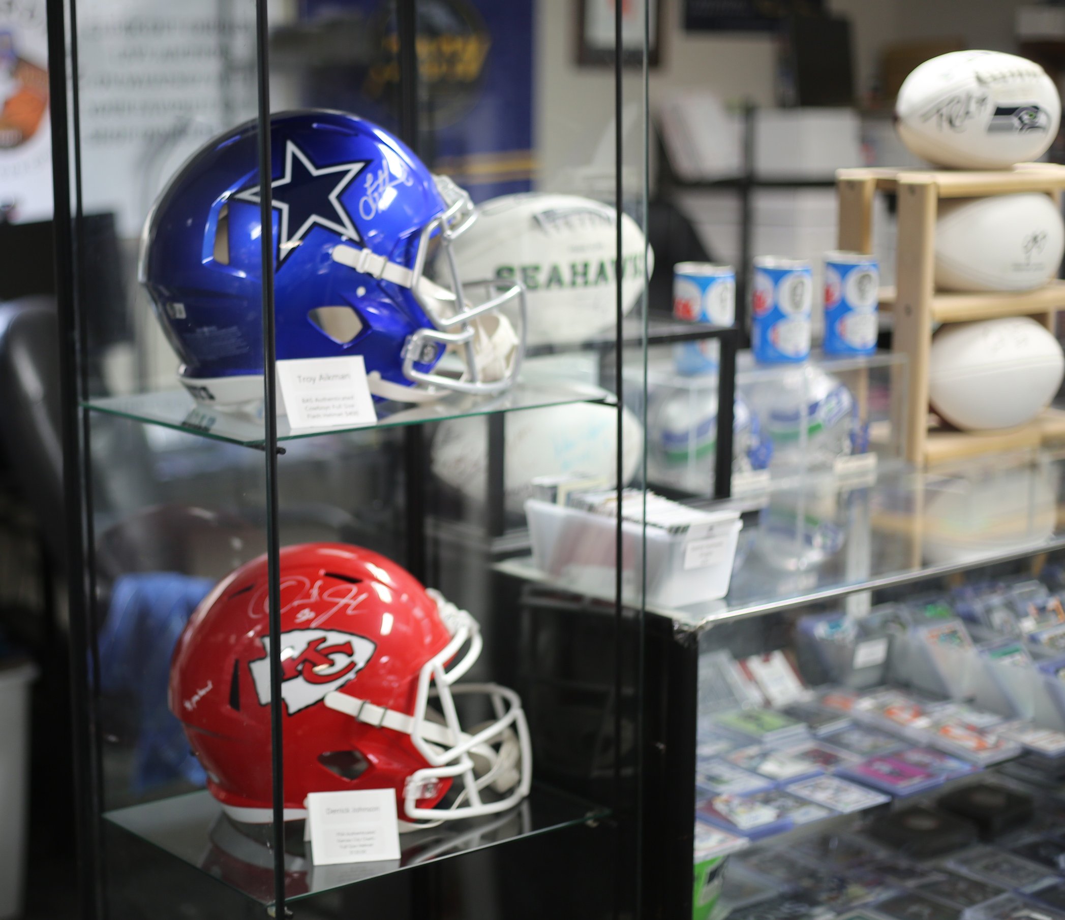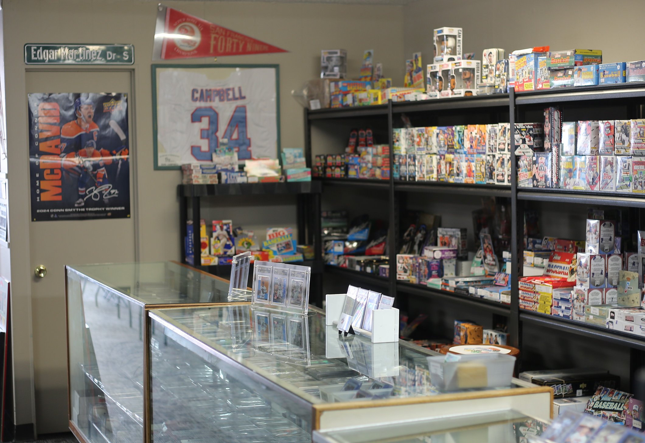 Collectors often share memories through the cards they collect. When you walk in, you are greeted with several shelves of trading cards. Not all of them are sports-related; many of them are Pokémon or Yu-Gi-Oh, and tables are lined up for patrons to play Dungeons and Dragons.