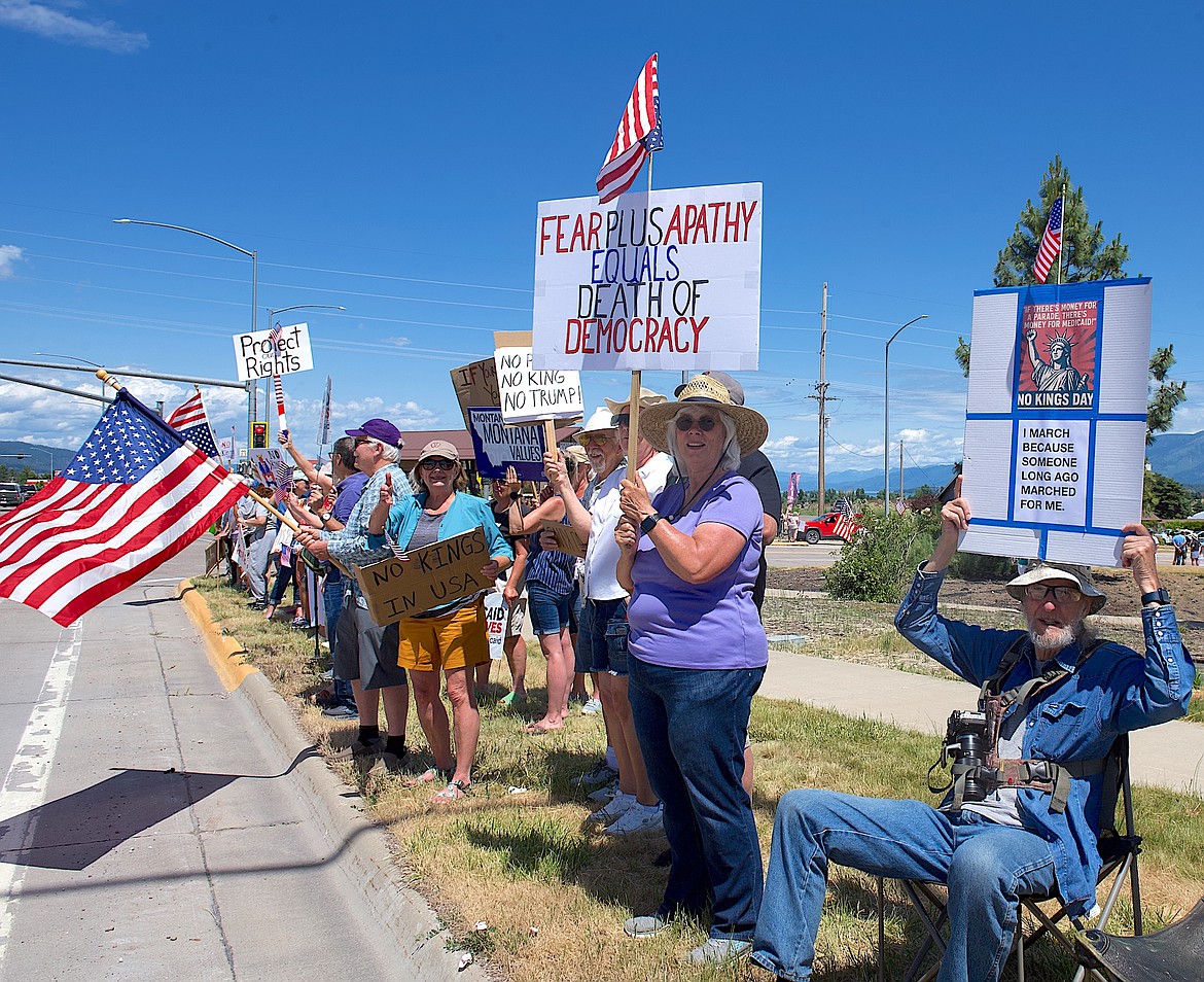 The protest in Polson was among nearly 30 held in Montana Saturday, and more than 2,100 that cropped up in towns and cities across the United States. It was held on the same day as a massive military parade in Washington, D.C., in honor the 250th anniversary of the U.S. Army, and coinciding with the president’s 79th birthday.