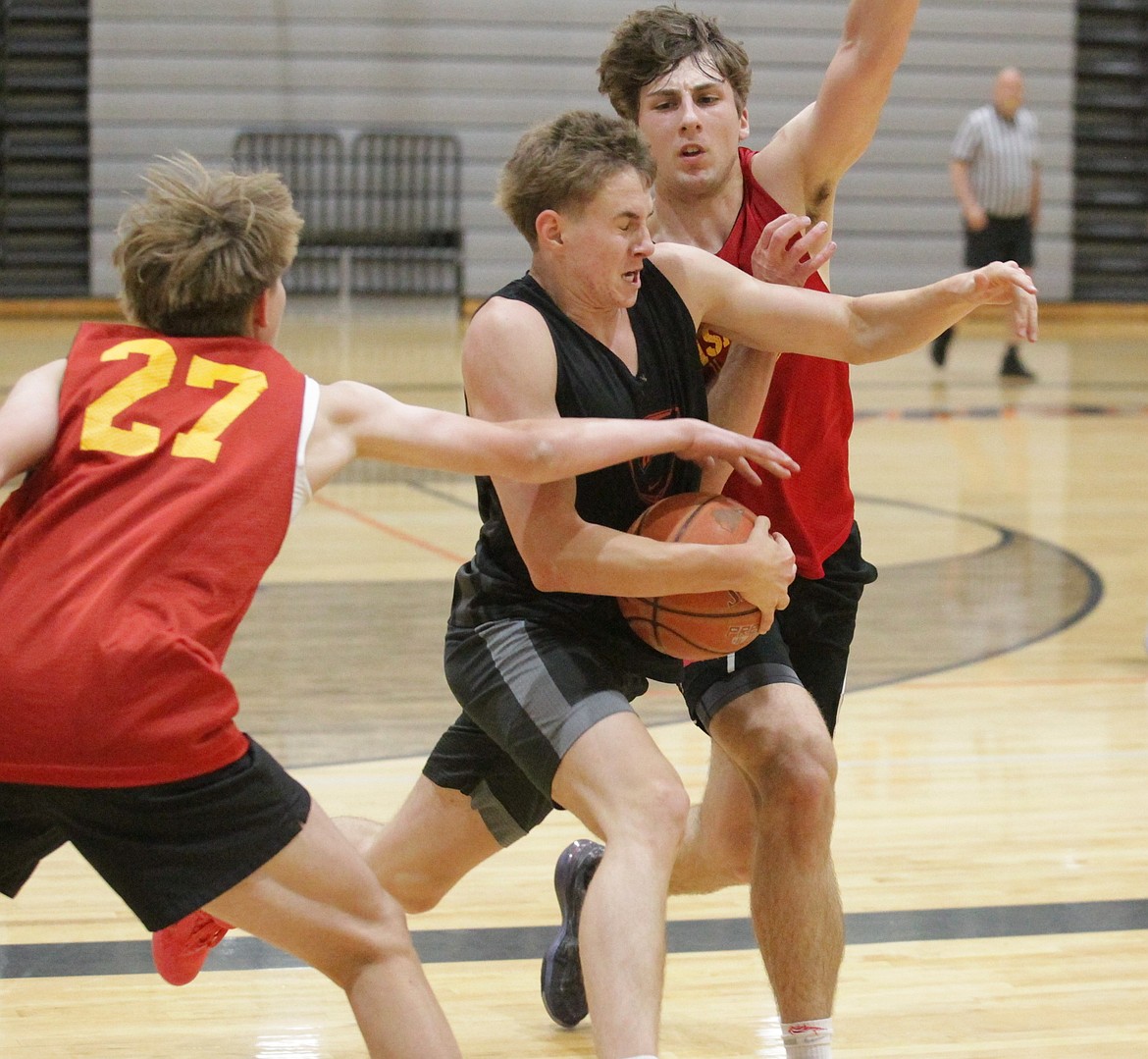 MARK NELKE/Press Jaxon Lysne, a rising senior at Post Falls High, drives to the basket in a game against Hellgate of Missoula at the fifth annual CDA Summer Shootout on Saturday at Post Falls High. The tourney, at several sites in Post Falls, concludes today with bracket play. Schedules can be found at Post Falls High, and also by downloading the TeamSnap Tournaments app and searching for CDA Summer Shootout. Information: cdasummershootout.com