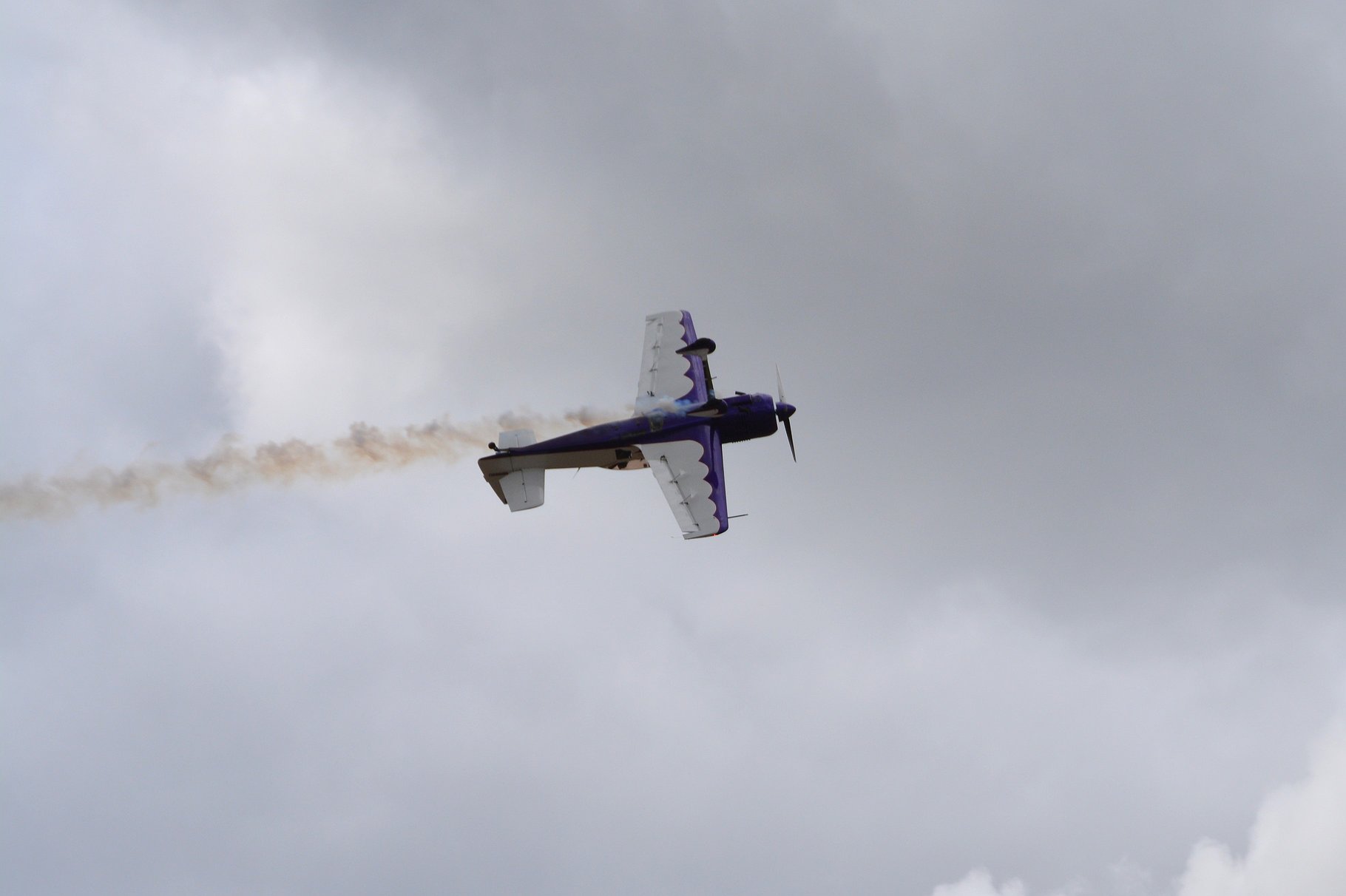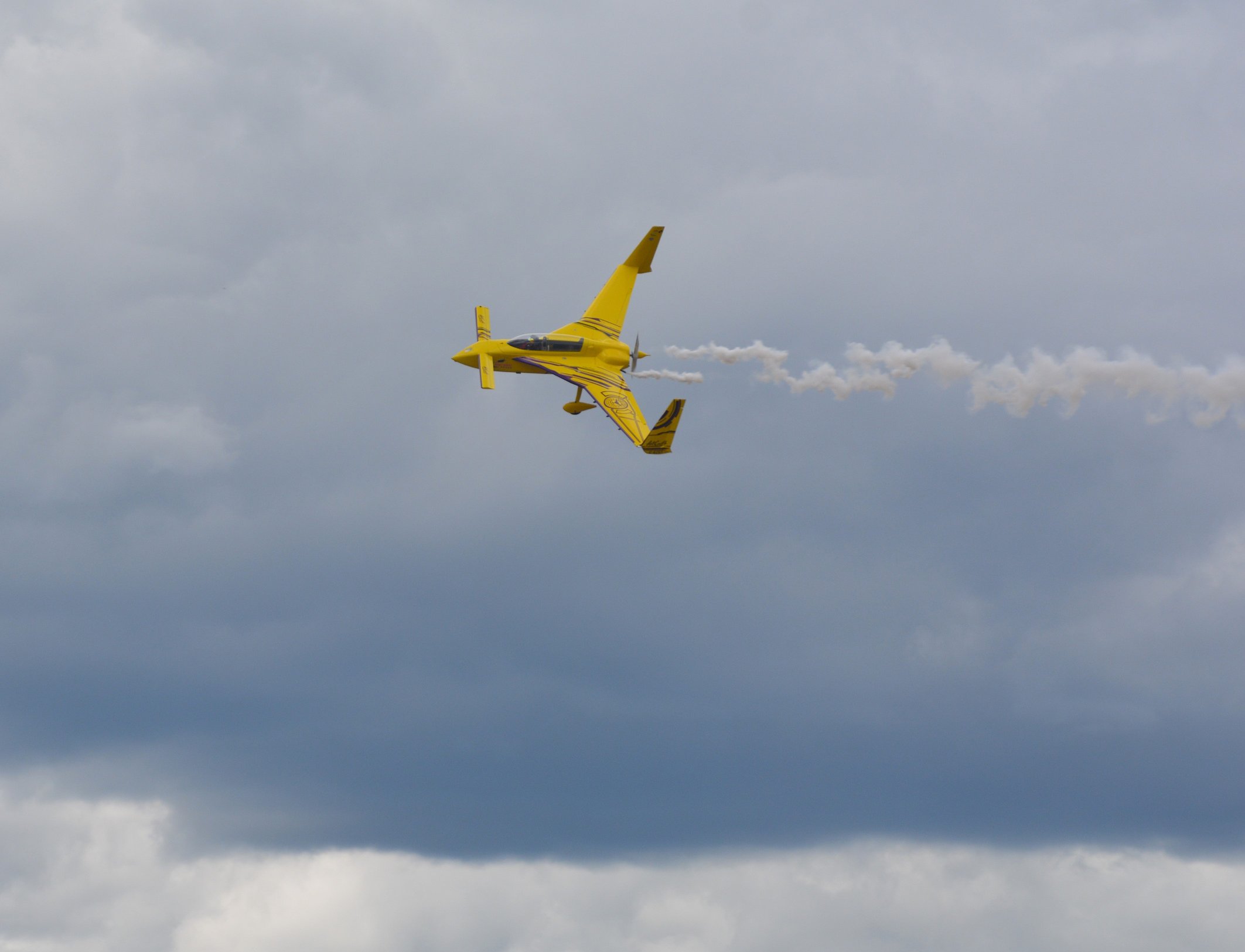 Renny Price takes his Sukhoi-29 upside-down during aerobatic stunts Friday at the rehearsal for the Coeur d’Alene Aviation Air Show and Expo. The Sukhoi-29 is considered one of the best two-place unlimited competition aircraft in the world currently and has a nine-cylinder radial, 360-horse powered engine.