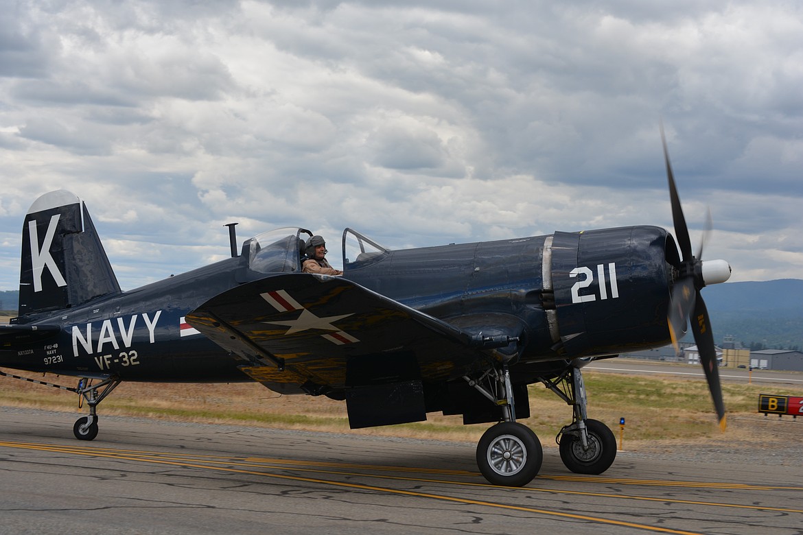 Dan Vance took the Vought F4U Corsair from the Erickson Collection for a flight over North Idaho skies Friday as the rehearsal for the air show got underway.