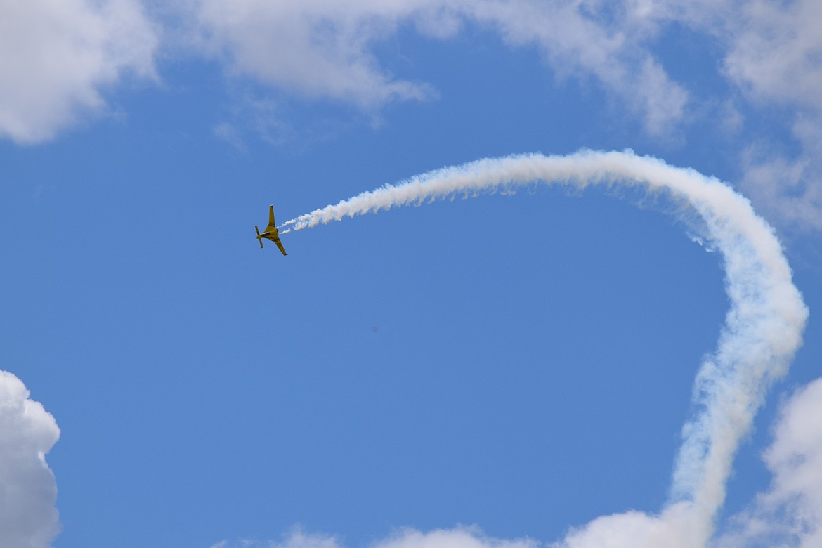 A P-51D Mustang, a Sukhoi SU-29, an RV-8A, a Vought F4U Corsair, and a unique yellow aircraft called the “Long Easy” each took turns streaking across the Prairie skies.