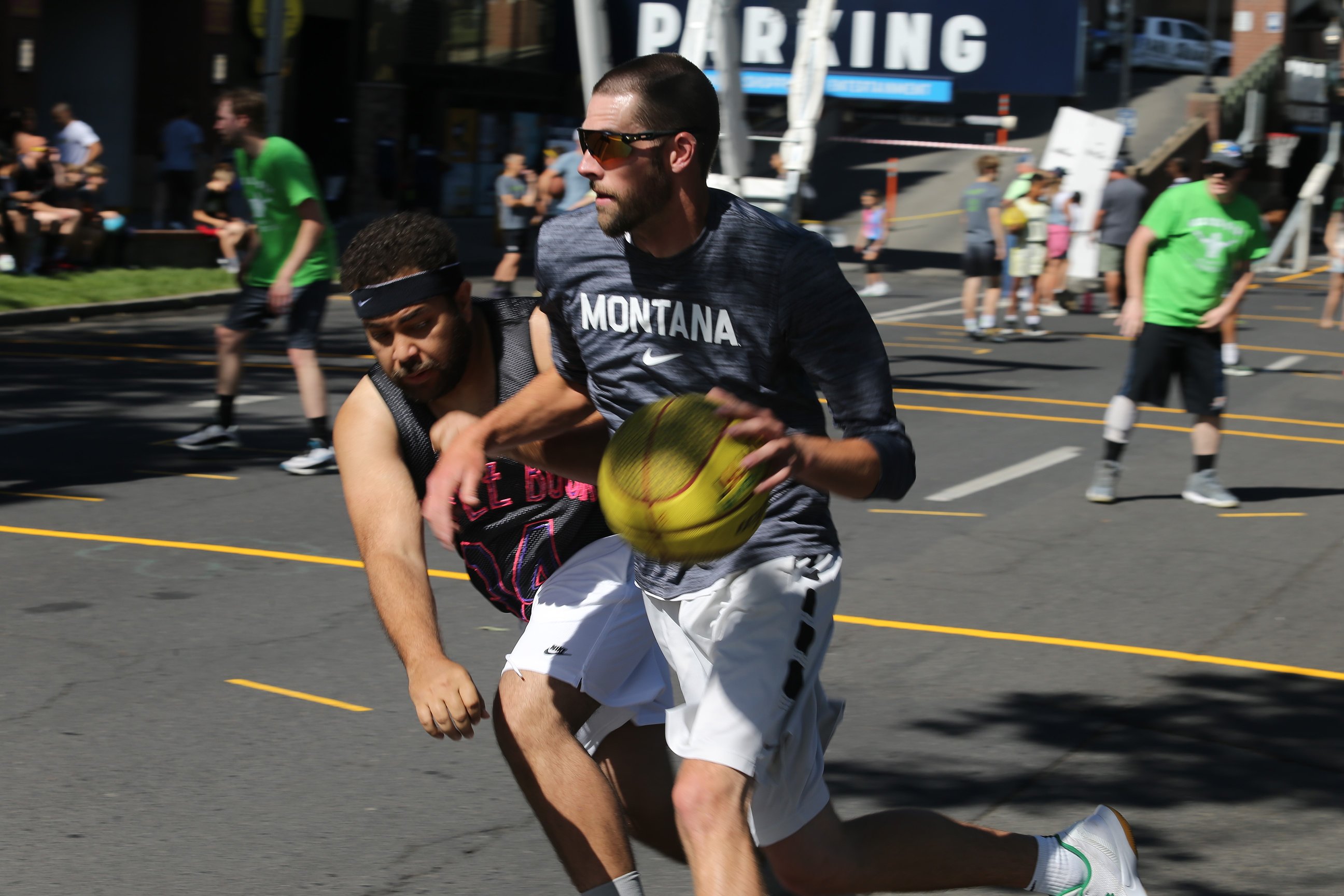 Schoening and Johnson were joined by former Griz forward Emma (Stockholm) Eastwood and her husband Adam Eastwood, a former Montana running back, to form “Griz Gang” in Saturday’s Spokane Hoopfest 3-on-3 basketball tournament.