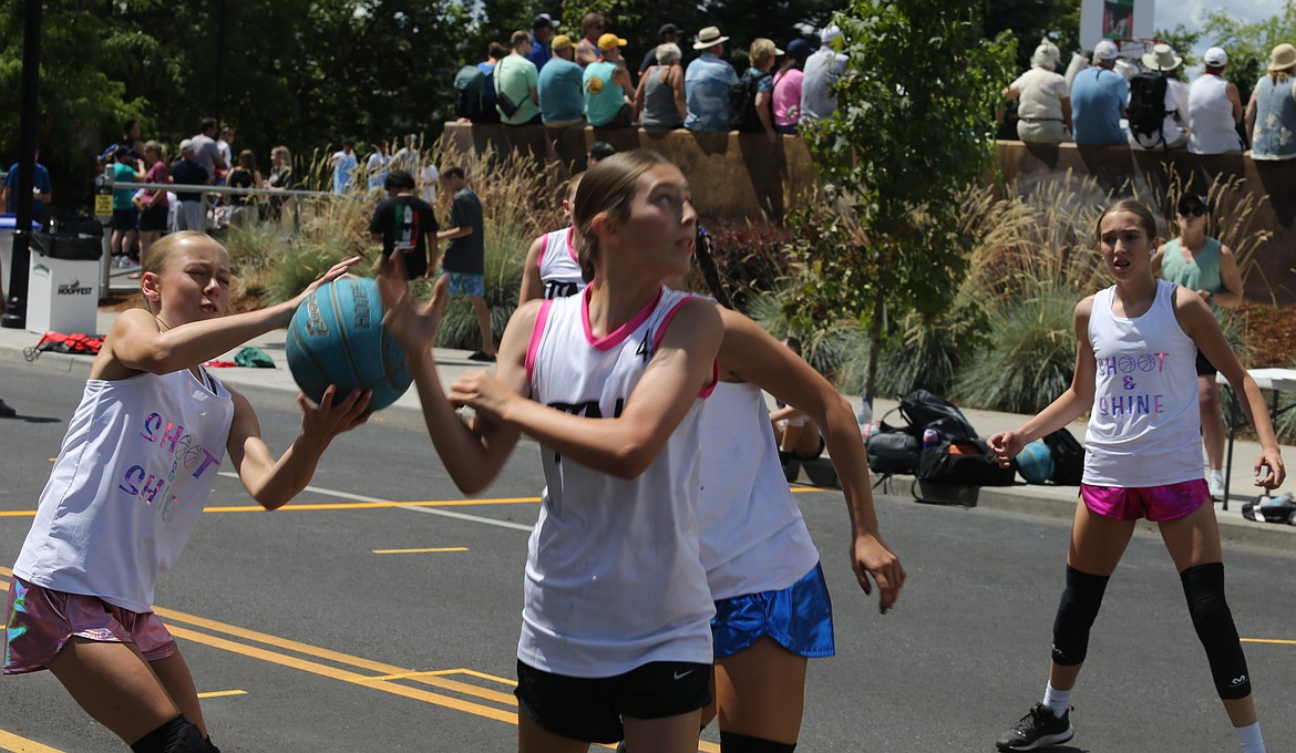 THE FUTURE of the girls basketball programs at both Coeur d’Alene and Post Falls high schools, or a part of it, was on display as River City Middle School students Kyal Carlson and Addi Salas joined forces with Canfield Middle School's Brylee Brown and Kinsley Wallis to form “Shoot and Shine,” a group of rising seventh-graders.