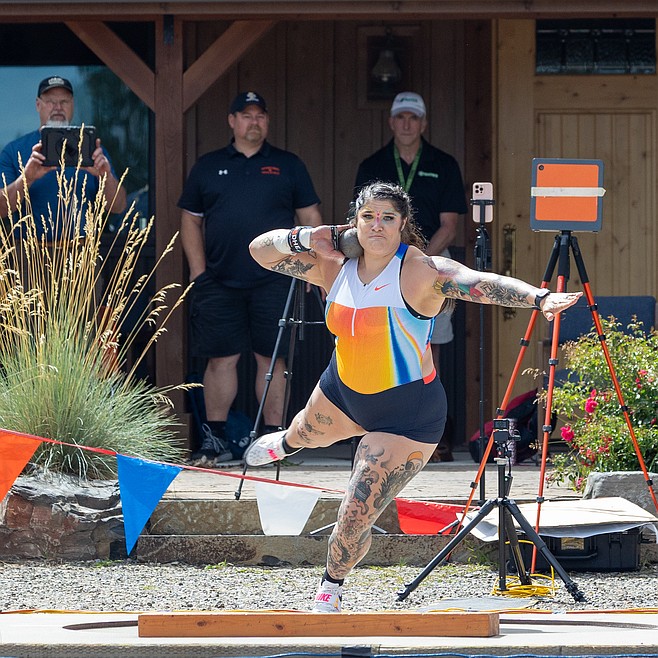“It’s a meet by throwers, for throwers,” said Otterdahl, who won the men’s discus on Saturday at the Iron Wood Throws Classic — his third win in four visits to Rathdrum. “And we know most of the people here, so it’s sort of like a big family reunion. It’s one of the only meets where we get to all be together. Most of our competitions, they might have one or two throwing events, but this is the only one that has all of them. It’s good to see everyone.”