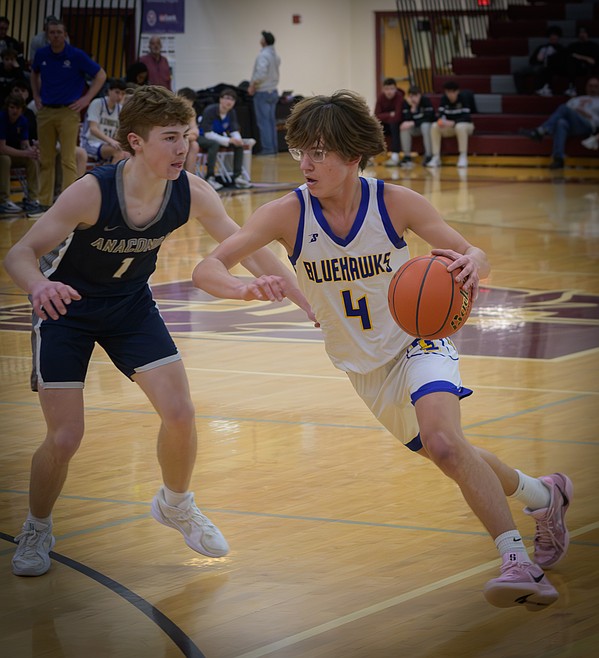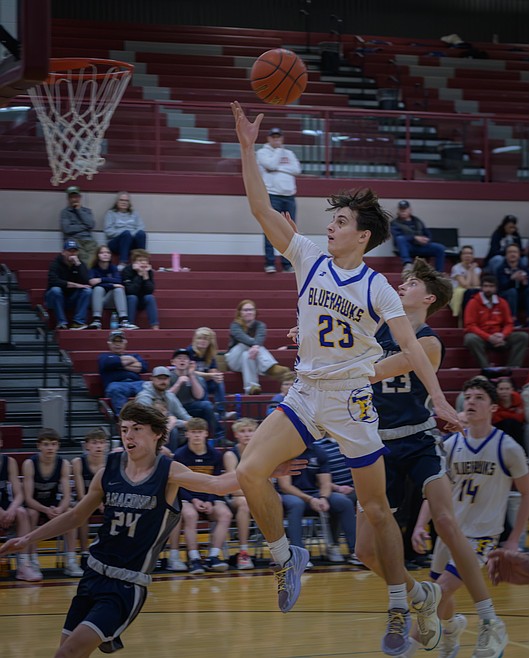 Guard/forward Owen Doyle led the Blue Hawks with 16 points and got 12 from senior guard Kaiden Robins and 10 from Ethan Burgess.