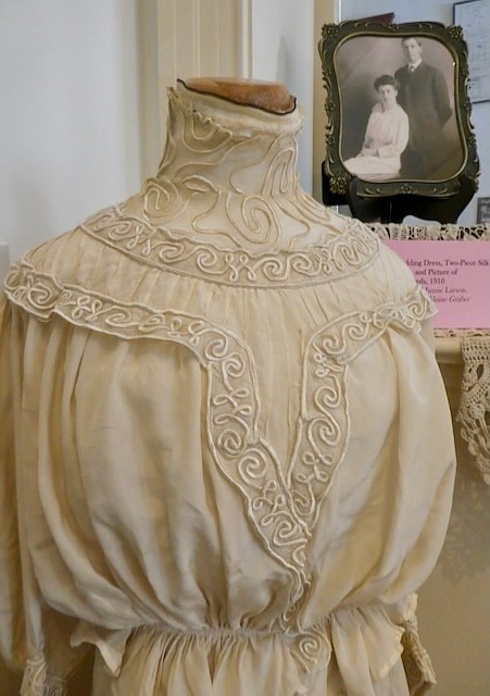 Visitors will see an extensive variety of hand-sewn articles representing the skill of the crafter. Featured pieces include a 1910 wedding gown, 1950s children’s clothing and practical items such as 1950s embroidered kitchen towels and an 1897 log cabin silk quilt.