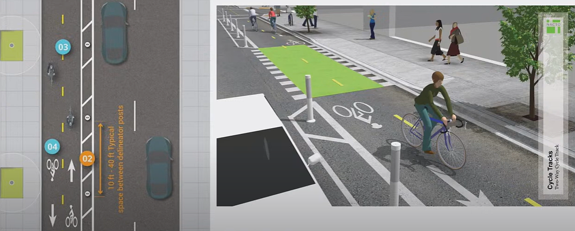 City engineer Rob Palus said that normally, it’s illegal to bicycle as you face traffic, but a cycle track adds greater safety and visibility supports for cyclists.