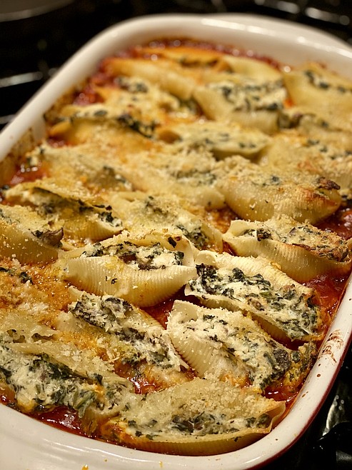 Stuffed mushroom and spinach shells are a pantry-powered comfort dinner