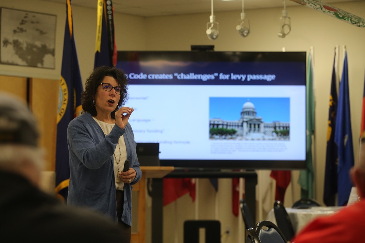 Naccarato discussed the average daily attendance school funding formula, Idaho Code requirements and more during an informational presentation at the Post Falls American Legion Post 143, attended by at least 30 Legion members and officers.