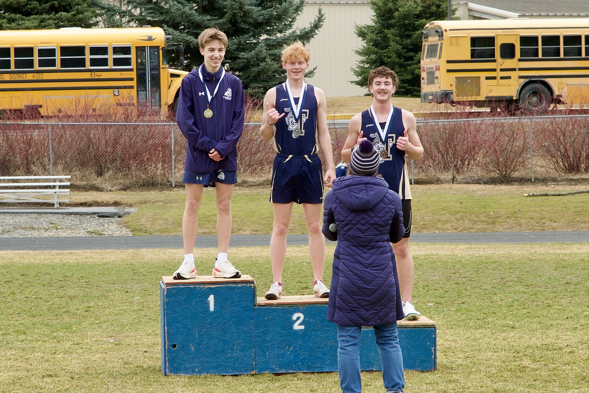 100 — 1, Conner Miller, Stillwater Christian, 12.09; 2, Ben Middleton, Bonners Ferry, 12.36. 200 — 1, Ben Middleton, Bonners Ferry, 24.36; 2, Spiro Petras, Bonners Ferry, 24.70. 400 — 1, Noah Curtis, Coeur d'Alene Charter, 55.09; 17, Brock Tuma, Bonners Ferry, 1:14.08. 800 — 1, Cody Clemons, Timberlake, 2:08.87; 4, Micah Thomson, Bonners Ferry, 2:13.51. 1600 — 1, Caleb Royce, Timberlake, 4:52.57; 4, Ethan Cowell, Bonners Ferry, 5:06.14. 3200 — 1, Ethan Cowell, Bonners Ferry, 10:50.70; 12, Colton Cohen, Bonners Ferry, 12:23.50.