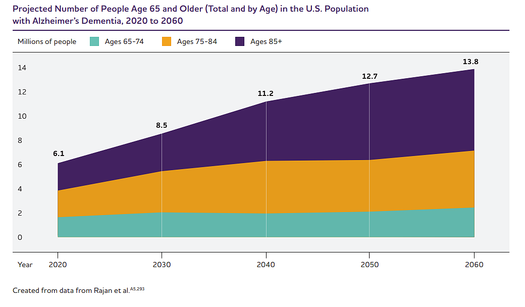 About one in 9 people (11%) age 65 and older has Alzheimer’s dementia and 64% of caregivers have chronic health conditions themselves.