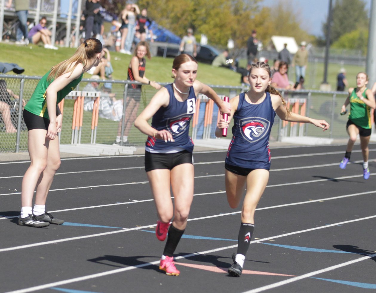 100 hurdles — 1, Reagan Meine, Cd’A Charter, 15.72. 2, Annabelle Tucker, Post Falls, 16.97. 3, Cecelia Jones, Post Falls, 16.99. 300 hurdles — 1, Reagan Meine, Cd’A Charter, 45.87. 2, Karstyn Kiefer, Lakeland, 47.86. 3, Annabelle Tucker, Post Falls, 48.44. 4x100 relay — 1, Lakeland (Casey Foster, Melia Gilbert, Karstyn Kiefer, Sapphire Ruelle), 49.69. 2, Timberlake, 51.23. 3, Bonners Ferry, 51.71. 4x200 relay — 1, Post Falls (Annabelle Tucker, Trinity Byrne, Reagan Hutchinson, Chloe Van Volkinburg), 1:46.33. 2, Lakeland, 1:47.78. 3, Timberlake, 1:48.07. 4x400 relay — 1, Cd’A Charter (Sofia Peppin, Annabelle Carr, Reagan Meine, Emmaline Carr), 3:57.26. 2, Post Falls, 4:06.67. 3, Lakeland, 4:09.59. Sprint medley — 1, Cd’A Charter (Reagan Meine, Sofia Peppin, Annabelle Carr, Emmaline Carr), 1:55.31. 2, Lakeland, 2:00.73. 3, Priest River, 2:01.63.