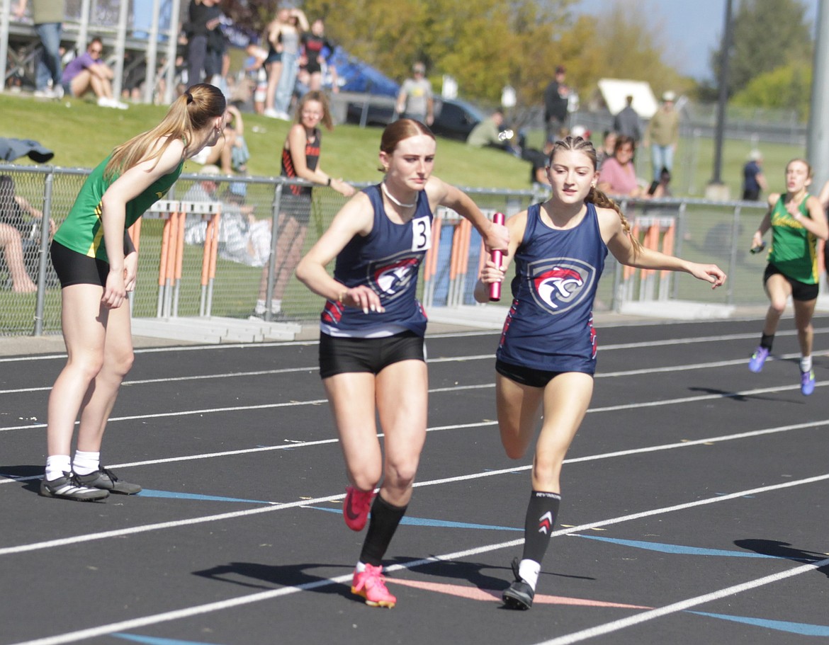 Coeur d’Alene Charter junior Annabelle Carr won the 800 in a meet record 2:12.91 and ran winning legs of the school’s 4x400 relay and sprint medley teams. Her sister, Charter freshman Emmaline Carr, broke the meet record in the 100 in 12.38 seconds.