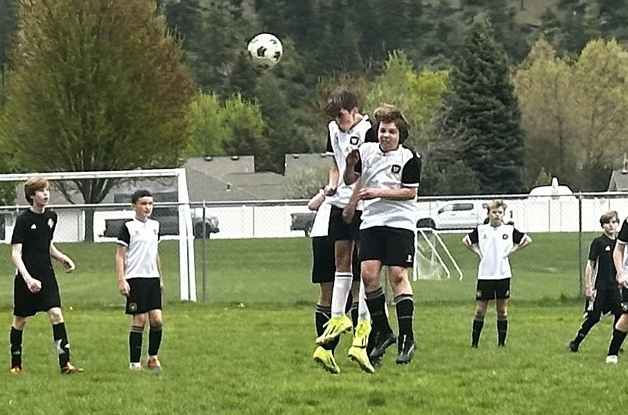 Courtesy photo Sunday morning the Sting 2016 Boys Black soccer team beat the Sandpoint Strikers FC Black 6-5. Sting Black goals were scored by Lincoln Treibwasser (28), Jackson Martin (8) and Oliver Lundy (19). On Sunday afternoon the Sting lost 6-5 to the Sandpoint Strikers FC Red. Sting goals were scored by Jackson Martin (8), Kellen McElmore (21) and Oliver Lundy (19). Pictured are Sting players, listening to coach Ian McKenna.