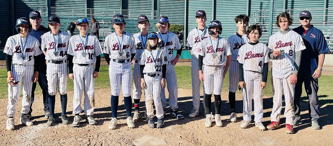 Courtesy photo The 14U Lumbermen baseball team finished second in the gold bracket last weekend at the Bullpen Series: Spring Championships in Ellensburg, Wash. From left are Levi Miller, coach Jeff Kreis, Blake Anderson, Kyle Everson, Clay Larwin, JJ Larson, Jack Kreis, Josh Gomez, Trent Lilyquist, Kovack Dolan, Cooper Fordham, Nash Russell, Caleb Brumbach and manager Dave Everson.