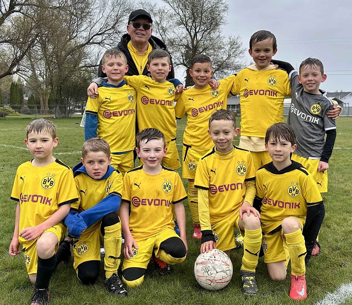 Courtesy photo The BVB IA U9 Yellow boys soccer team defeated 90+ Project B2016 8–3 on Saturday in Spokane Valley. Competing in the BU09 2016 Division 1 bracket of the Washington Inland Select League (WISL), the BVB IA team now holds a 1-1-1 record. In the front row from left are Ryker Raber, Jasper Johnson, Colin Happeny, Xander Werner and Grayson Martino; second row from left, Graham Brown, Estes Hartley, Hugh Erickson, Gideon Milligan and Luke Odom; and rear, coach John O'Neil.