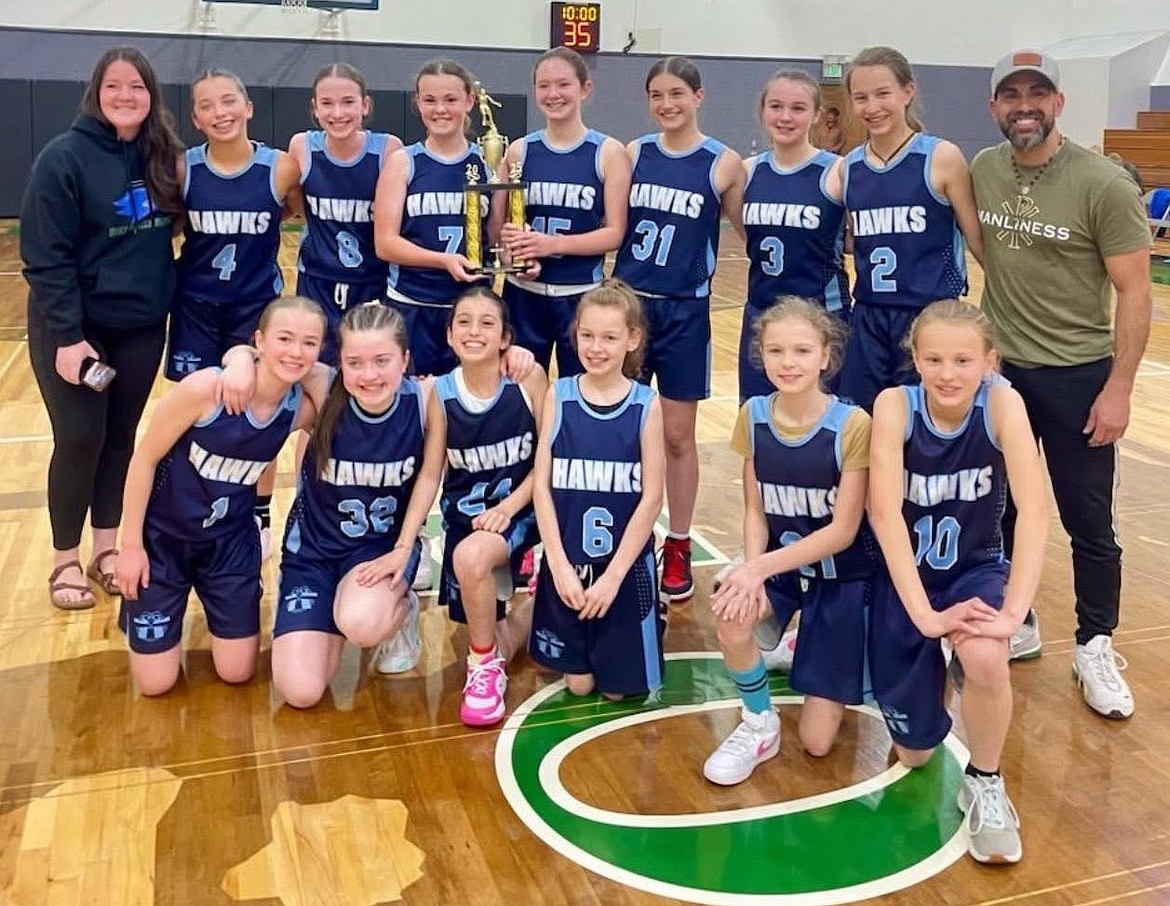 Courtesy photo The Holy Family Catholic School middle school girls basketball team won the Mountain Christian League tournament held at The Oaks Classical Christian School in Spokane Valley. Holy Family defeated Christian Center School of Hayden for the title. In the front row from left are Caroline Anderson, Grace Anderson, Eliyah Chavez, Natalie Fitzgerald, Holley Collins and Lila Fisher; and back row from left, coach Allie Linscomb, Violet Oberholzer, Emily Murphy, Ava Langer, Lily Alberton, Isabel Cefola, Quinn Bailey, Felicity Fisher and coach Jason Chavez.
