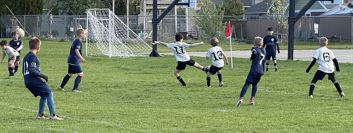 Courtesy photo The 2014 Sting Black girls soccer team beat the Sandpoint Strikers 3-2 last Saturday, with goals by Poppy Moreau and Elsie Hewitt-Nord. The Sting Soccer Club will be hosting the Bill Eisenwinter Hot Shot Tournament this weekend with over 200 teams participating including the 2014 girls black and yellow teams. Pictured at right is Finley Martin, sending the ball upfield going for a shot in goal.