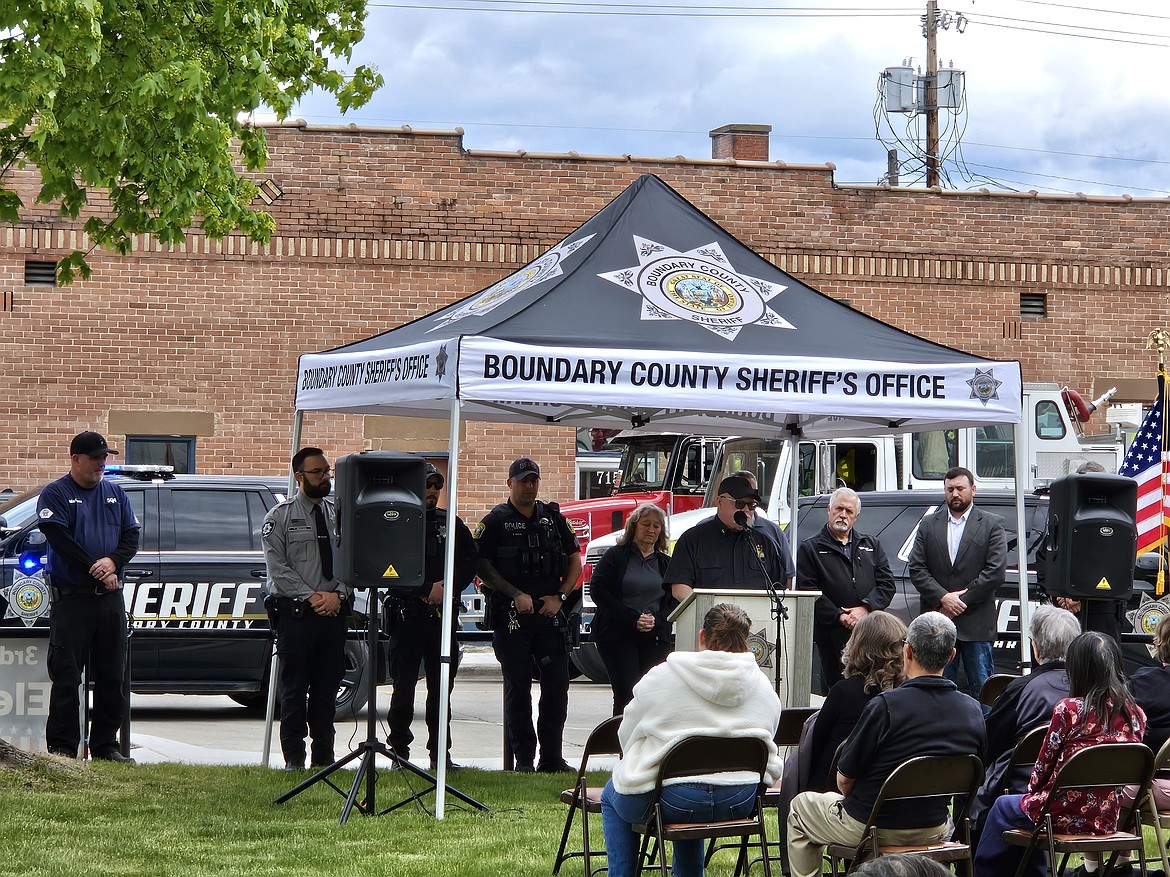 Representatives from several area emergency services agencies participated in the event. The Boundary County Sheriff’s Office, Bonners Ferry Police Department, Hall Mountain Volunteer Fire Department, Idaho State Police, and the Boundary County Chaplain Corps took turns reading the line-of-duty lists.